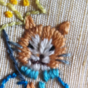 綿の藍の布地に、刺繍しました。