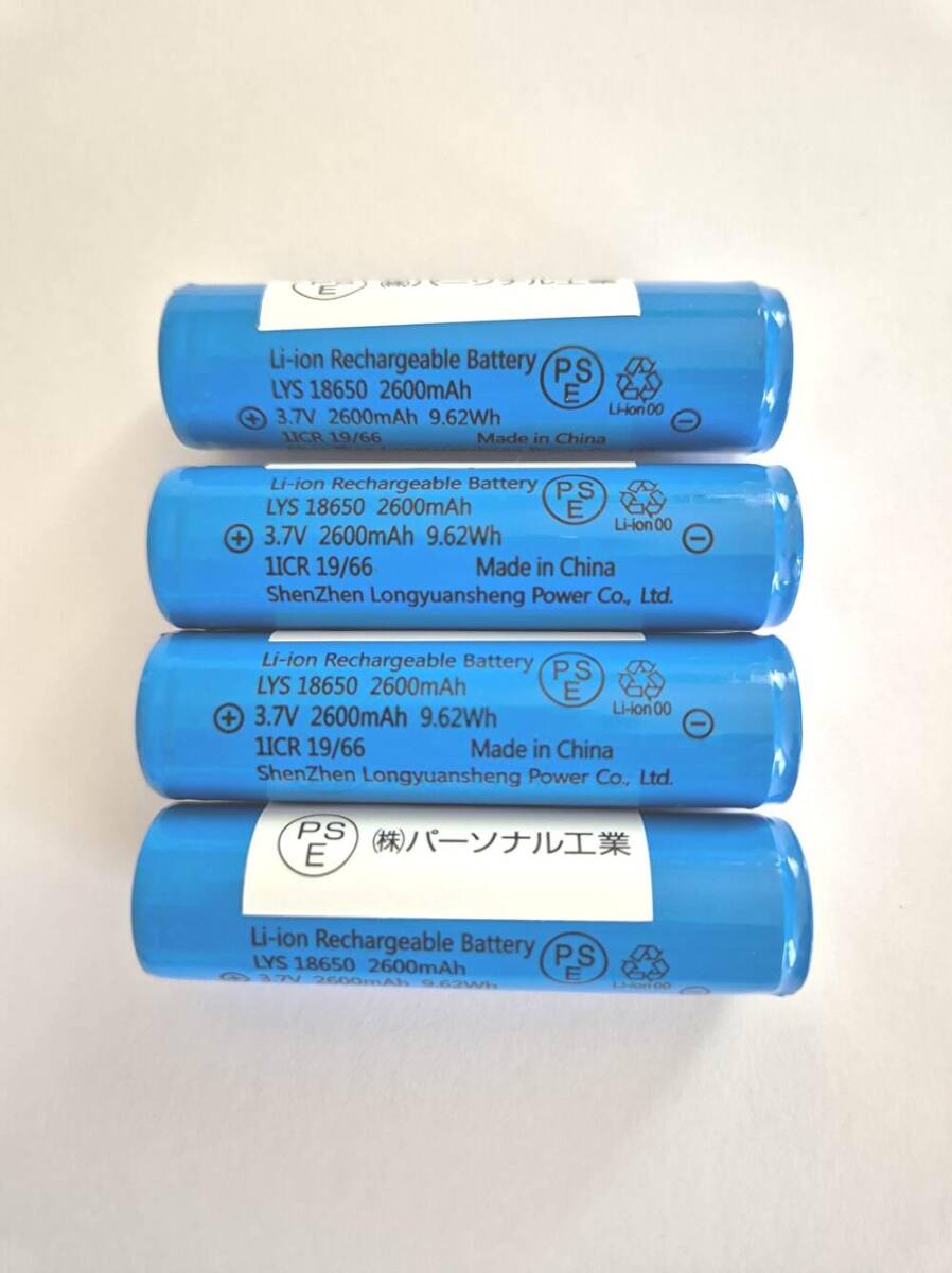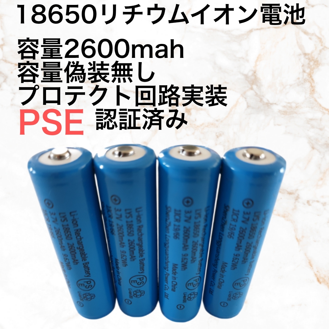 4本 容量偽装無 18650リチウムイオン電池 保護回路付 2600mah PSE適合検査済み 国内検査済み